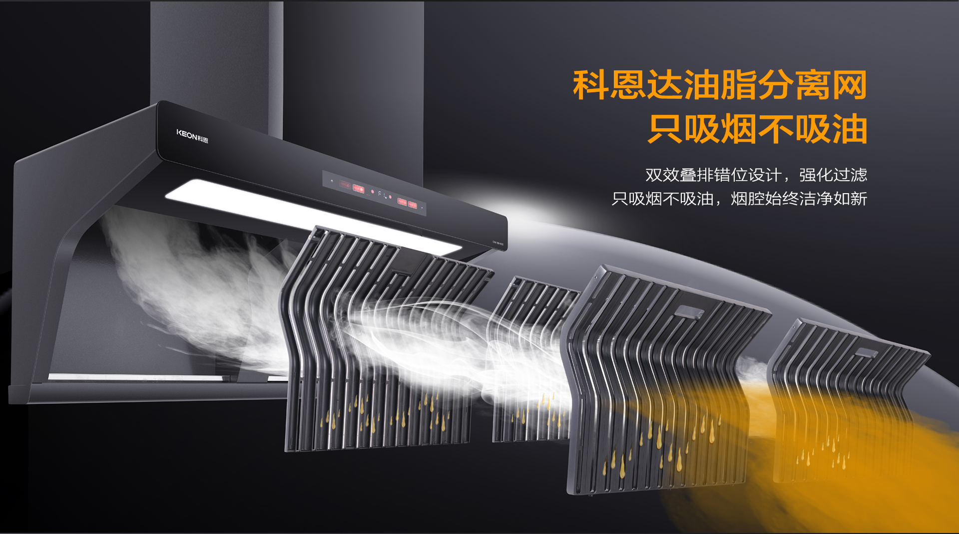 科恩免清洗煙機(jī)是浙江科恩電器有限公司旗下產(chǎn)品,歷時(shí)3年研發(fā),于2023年重磅推出。免清洗煙機(jī)一經(jīng)推出,便受到行業(yè)和市場的熱情追捧。其核心的科恩達(dá)油脂分離網(wǎng)憑借嚴(yán)格苛刻的高溫噴砂特氟龍易潔工藝以及科恩達(dá)油脂分離網(wǎng)U型錯(cuò)層科學(xué)結(jié)構(gòu)設(shè)計(jì),做到油煙可被快速分離,油脂高效冷凝,同時(shí),能更好地起到阻火阻燃的效果!真正做到只吸煙不吸油,徹底告別煙機(jī)內(nèi)部清洗難題,保證煙機(jī)持久大吸力,延長煙機(jī)使用壽命。