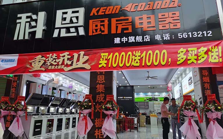 熱烈祝賀科恩廚房電器廣西賀州專賣店隆重開(kāi)業(yè),國(guó)家高新技術(shù)企業(yè),國(guó)標(biāo)行標(biāo)起草單位,浙江制造標(biāo)準(zhǔn)起草單位,全品類廚電制造專家,科恩廚房電器是一家專業(yè)生產(chǎn)高檔吸油煙機(jī)、燃?xì)庠?/strong>、消毒柜、集成環(huán)保灶、移動(dòng)凈水器等一體綜合性廚衛(wèi)電器企業(yè)。