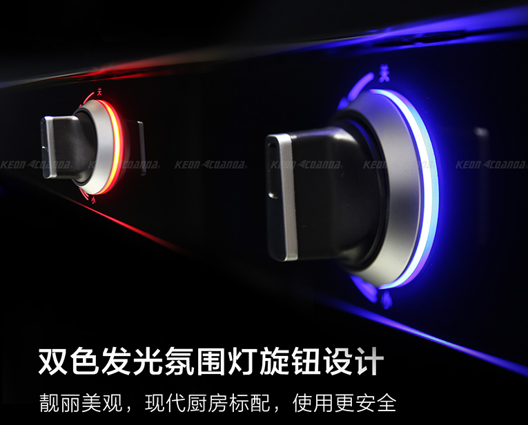 集成灶十大品牌科恩智能炫彩系列集成灶D620采用非凡設(shè)計,五合一全能配置,結(jié)合造就簡約流暢的現(xiàn)代風(fēng)格,與整體櫥柜搭配彰顯氣質(zhì),體現(xiàn)尊貴華麗風(fēng)范。機頭采用藍色氛圍燈,雙色發(fā)光氛圍燈灶具旋鈕設(shè)計,整機不僅顯得靚麗美觀,為廚房增添光彩,灶具旋鈕雙色設(shè)計更能保證集成灶的使用安全。