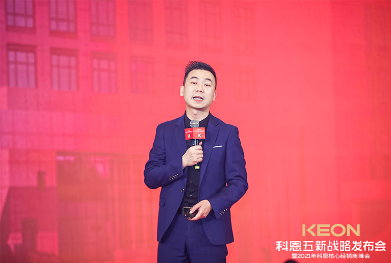 這一切成功的背后,除了有一支優(yōu)秀的鐵血團(tuán)隊(duì),還有各地經(jīng)銷商家人的支持陪伴,更重要的是有一位領(lǐng)航人不斷地探索。科恩電器董事長(zhǎng)俞鋒上臺(tái)致辭,宣布峰會(huì)正式開(kāi)始,“打造新科恩、重塑新科恩,再創(chuàng)科恩黃金十年”這一堅(jiān)定目標(biāo)和信念,伴隨洪亮的嗓音響徹全場(chǎng)。