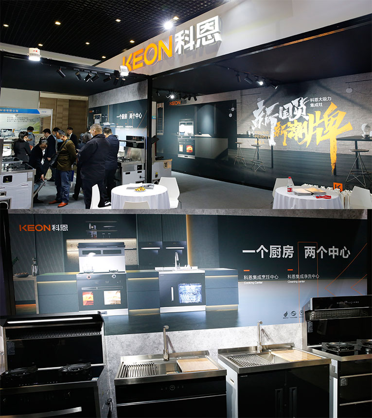 集成灶十大品牌、廚電行業(yè)十大品牌科恩集成灶半敞開式展位更顯非凡氣度,“新國(guó)貨、新潮牌”時(shí)尚氛圍更是吸睛無(wú)數(shù),通過(guò)零距離體驗(yàn)產(chǎn)品,感受科恩產(chǎn)品帶來(lái)的樂享智慧廚房體驗(yàn)。作為嵊州集成灶軍團(tuán)主力軍,攜“一個(gè)廚房,兩個(gè)中心”集成烹飪中心S系列集成灶與集成凈洗中心X系列集成水槽等多款凝聚匠心與智能之作重磅亮相。