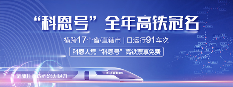 作為集成灶十大品牌、廚電行業(yè)十大品牌的科恩集成灶,杭紹臺高鐵的建成開通,開啟了科恩集成灶發(fā)展新篇章。2021年,斥資800萬,“科恩號”高鐵品牌專列馳騁大江南北,橫跨17個省/直轄市,日運行91車次。