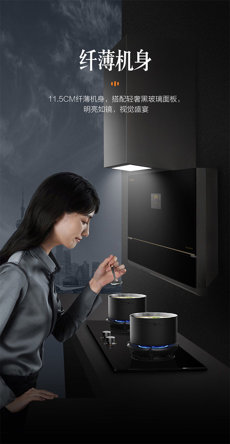 廚房環(huán)境要將就?絕不同意!高顏值的廚房離不開(kāi)高性能的廚電搭配,集成灶十大品牌、廚電行業(yè)十大品牌科恩新一代大吸力煙機(jī)7350,大吸力,不跑煙!整機(jī)采用輕奢黑晶玻璃面板,11.5cm纖薄機(jī)身,搭配大寬屏柔光照明,烹飪視野更加開(kāi)闊,無(wú)需低頭就能分辨調(diào)味料,盡情享受廚房的聚光燈。