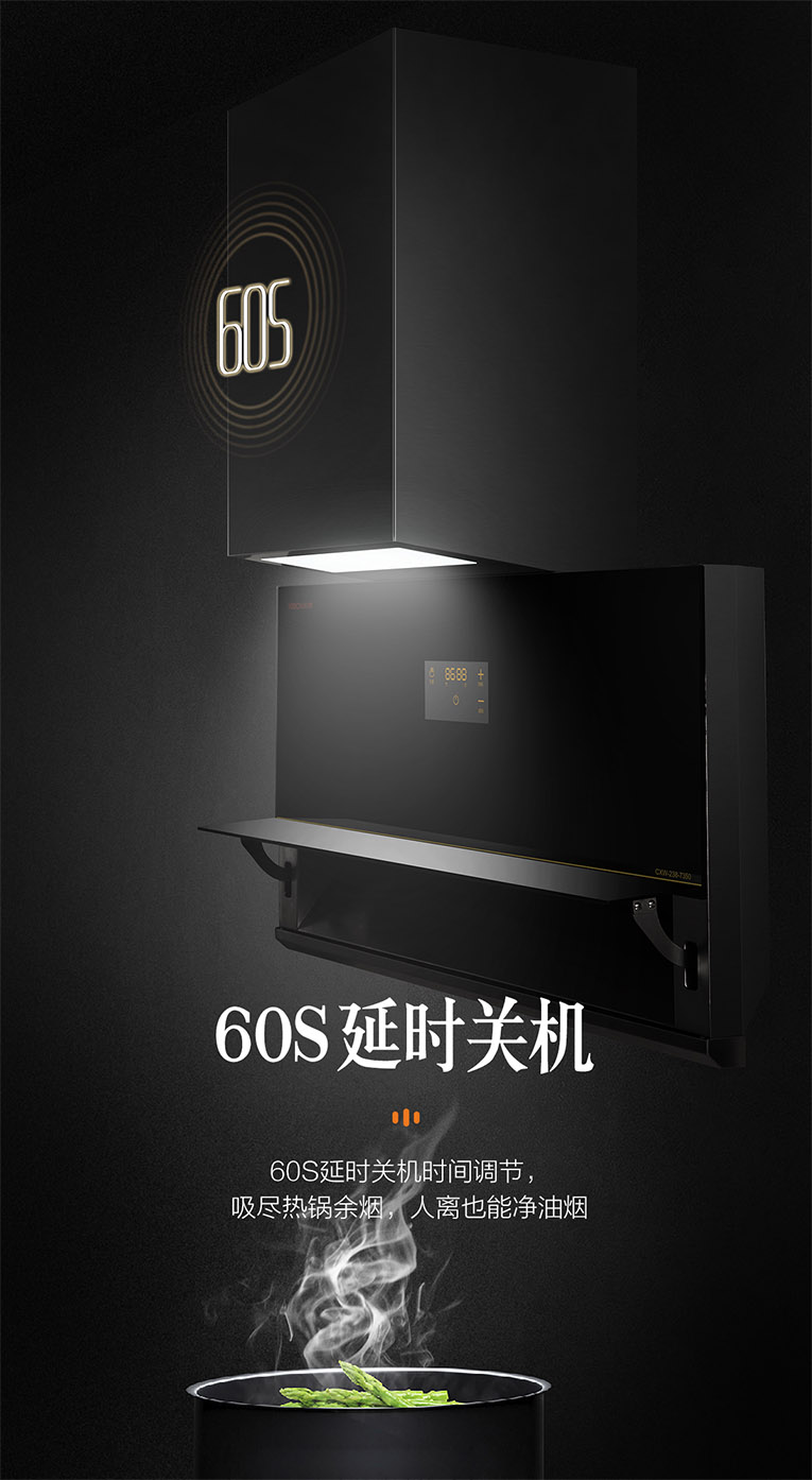 19.5m3/min大吸力,800Pa大風(fēng)壓,大空間低位瞬吸,八檔風(fēng)速調(diào)節(jié),全面封鎖油煙升騰區(qū),讓油煙煩惱煙消云散。