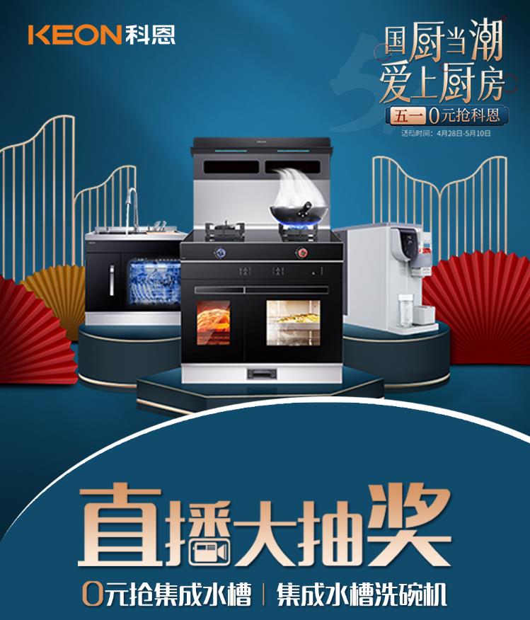國廚當(dāng)潮,愛上廚房——0元搶科恩活動正在火爆進行中,為回饋消費者,科恩電器特于5月4日晚舉行了直播大抽獎活動。