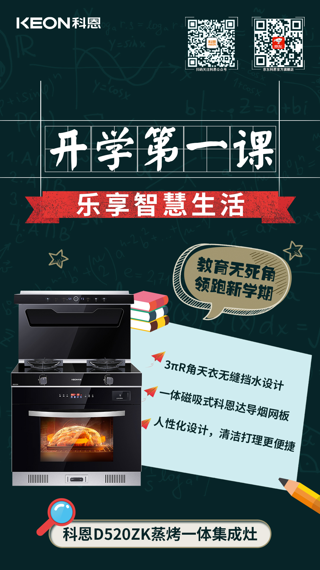 開學(xué)季!打開高質(zhì)量開局,迎接新的挑戰(zhàn),為孩子筑牢健康防線,為開學(xué)貼心護(hù)航,科恩集成灶陪你一起沖!
