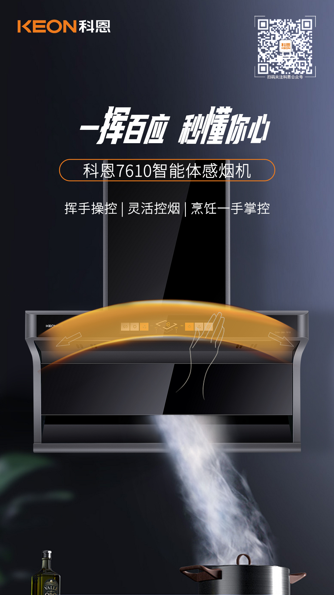 廚房有煙火,家里有溫度,科恩7610頂側(cè)雙吸平板煙機(jī),用心呵護(hù)著柴米油鹽里的浪漫!