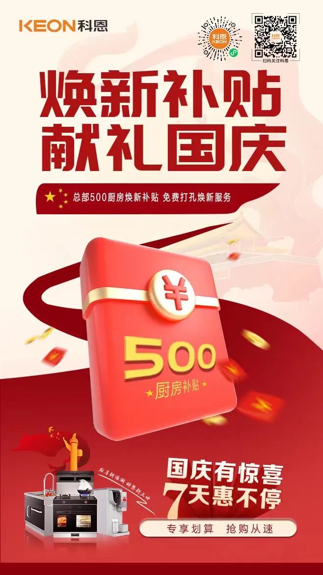 活動(dòng)期間,凡老廚房煥新參加科恩本次活動(dòng),可獲得總部派發(fā)的500元煥新補(bǔ)貼并免費(fèi)提供打孔煥新服務(wù)!