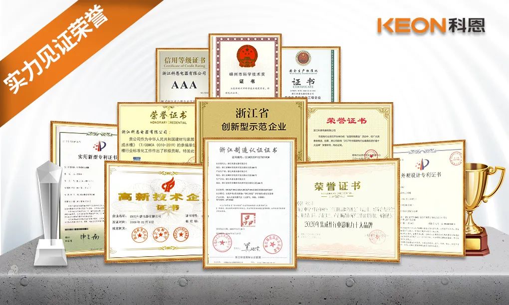品質(zhì)彰顯,載譽(yù)前行!科恩電器始終以匠心鑄就品牌榮耀勛章,用品質(zhì)獲得了行業(yè)和消費(fèi)者的普遍認(rèn)可,擁有高新技術(shù)企業(yè)、專利示范企業(yè)、集成灶十大品牌、集成水槽十大品牌、行業(yè)國標(biāo)起草單位、高效凈化環(huán)保之星、CNAS認(rèn)可實(shí)驗(yàn)室、浙江制造標(biāo)準(zhǔn)起草單位、集成灶團(tuán)體標(biāo)準(zhǔn)起草單位、建材與家居專業(yè)標(biāo)準(zhǔn)《集成水槽》參編企業(yè)等榮譽(yù)。并擁有百余項(xiàng)專利技術(shù)認(rèn)證,參與并起草多項(xiàng)標(biāo)準(zhǔn),為行業(yè)的技術(shù)研發(fā)提供數(shù)據(jù)支撐,一個個的榮譽(yù)背后,見證著科恩贏得了眾多消費(fèi)者的信賴與支持。