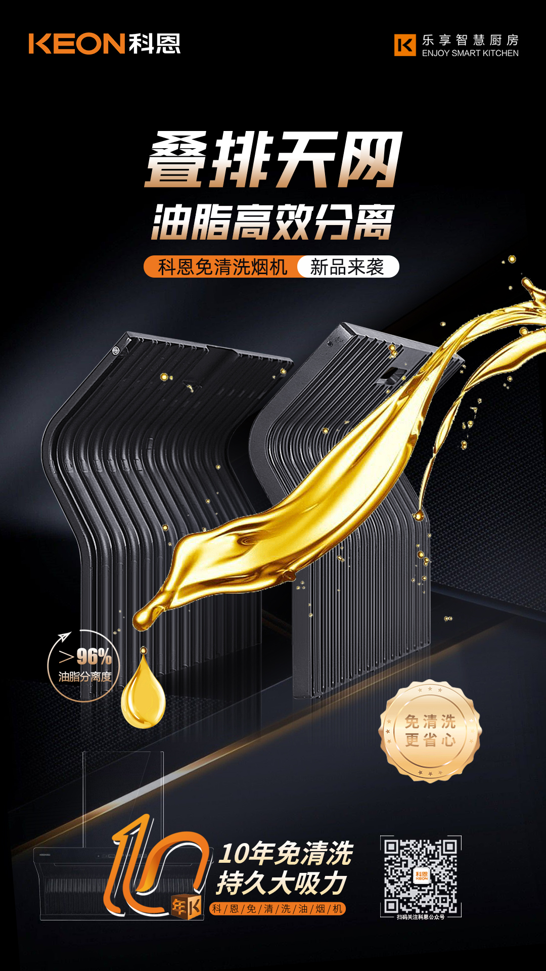 科恩電器歷時(shí)3年研發(fā)雙效疊排天網(wǎng),采用易潔太空壓鑄鋁材,經(jīng)過酸洗-噴砂工藝加之特氟龍噴涂最后高溫?zé)Y(jié),不僅不沾油、易清潔更好打理。同時(shí),能好的阻燃阻熱!雙效疊排天網(wǎng)將油煙盡數(shù)隔離在外,真正做到只吸煙不吸油。徹底告別煙機(jī)清洗難題。十年免拆清洗,持久大吸力!終于一款替代人類清洗煙機(jī)的廚電產(chǎn)品即將面世,讓廚房生活不再油污滿地。