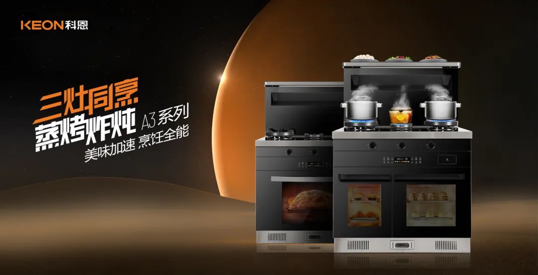 配合現(xiàn)代人快節(jié)奏生活,科恩研發(fā)了A3系列集成灶,不僅可以做到三灶同烹,還能同時(shí)蒸烤,15分鐘一桌美食,不再是愿望。