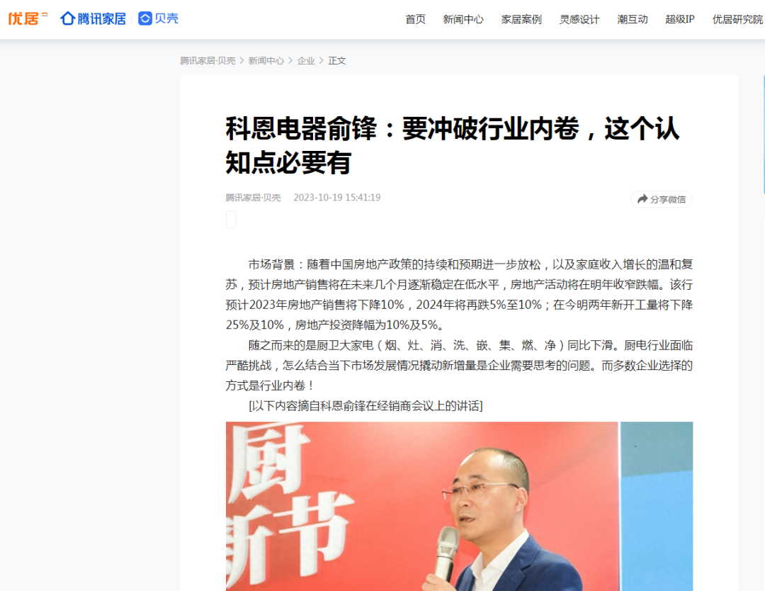 市場內(nèi)卷有兩個(gè)比較明顯的標(biāo)記,一個(gè)標(biāo)記就是價(jià)格被不斷揭穿底線;另外一個(gè)標(biāo)記就是增量客戶不斷消失,大家都開始去做存量市場。這兩個(gè)標(biāo)記在廚電行業(yè)已經(jīng)很明顯。