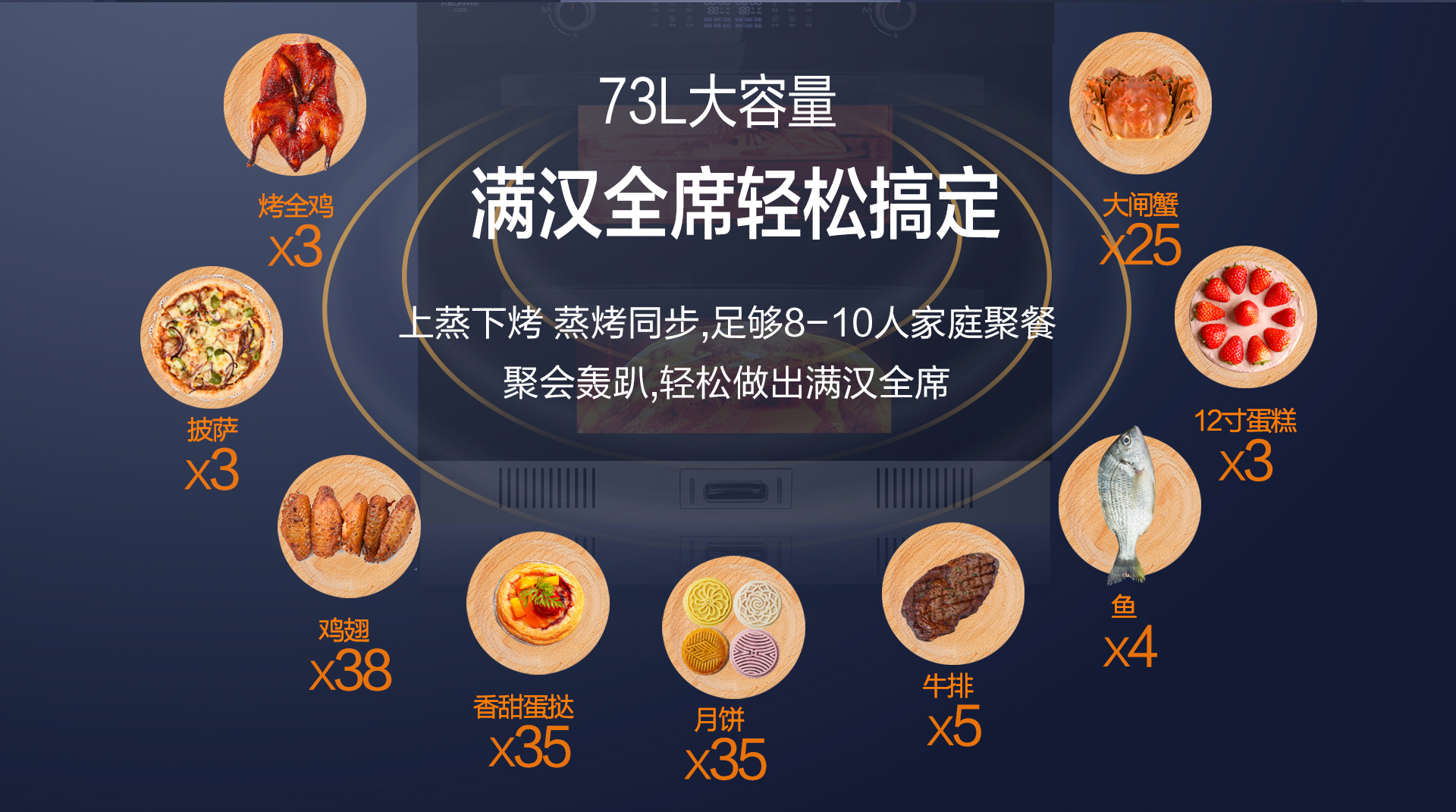 科恩C300L采用上蒸下蒸烤的方式,完美實現(xiàn)蒸烤同步,開啟倍速烹飪生活。