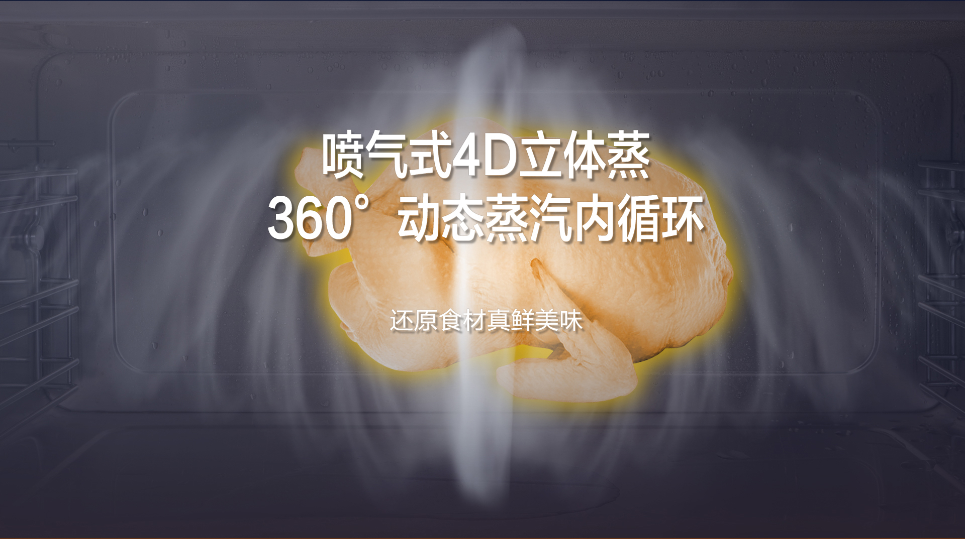 噴氣式4D立體蒸,360°動態(tài)蒸汽內循環(huán),還原食材真鮮美味。
