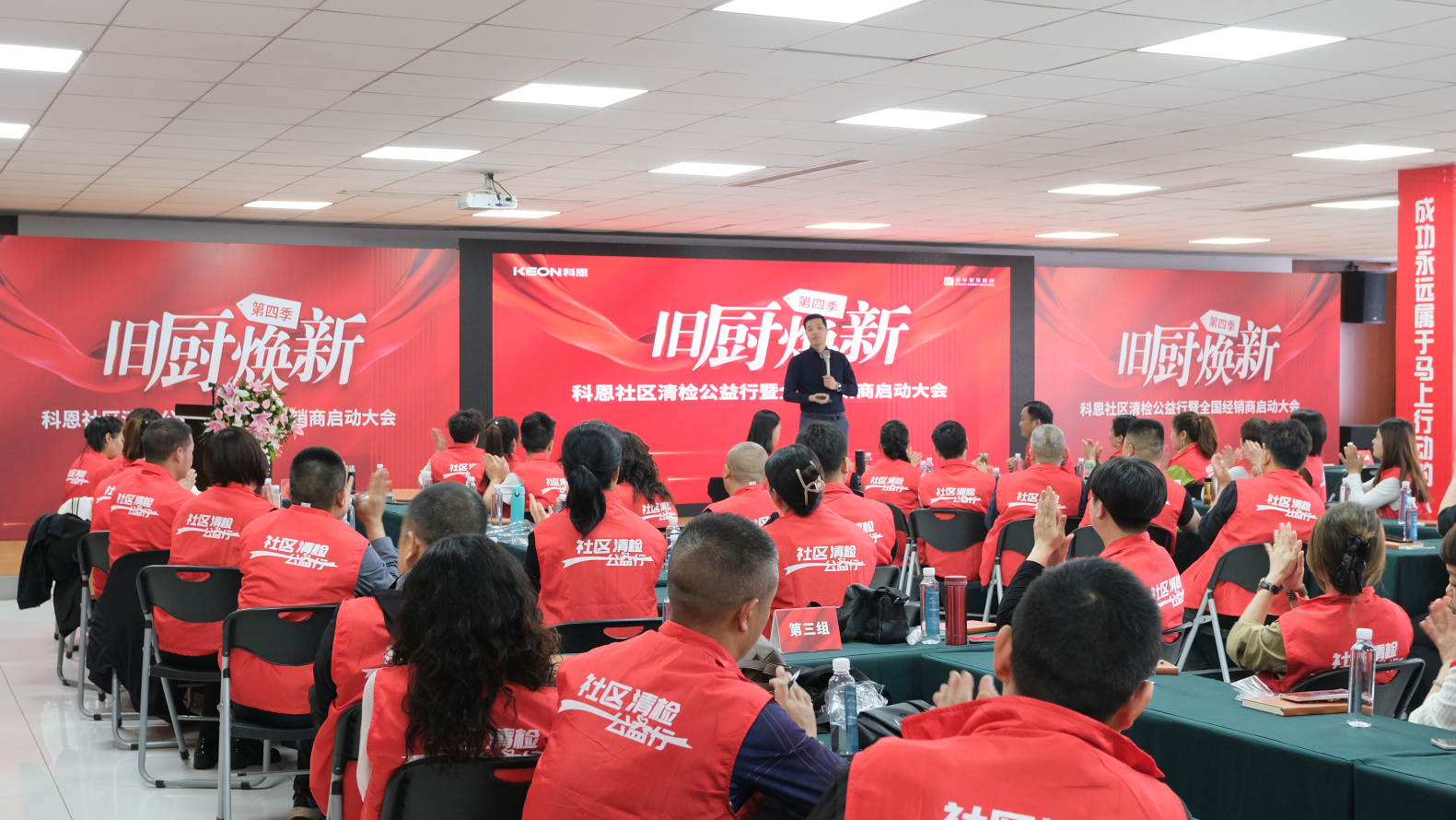 浙江科恩電器有限公司深入貫徹國家政策,自2023年起就制定完善家電以舊換新工作方案,開展以舊換新活動。今日,浙江科恩電器有限公司“第四季以舊換新”啟動大會,本次會議為期兩天,于科恩總部正式召開。全國優(yōu)秀經(jīng)銷商代表參與了本次會議。