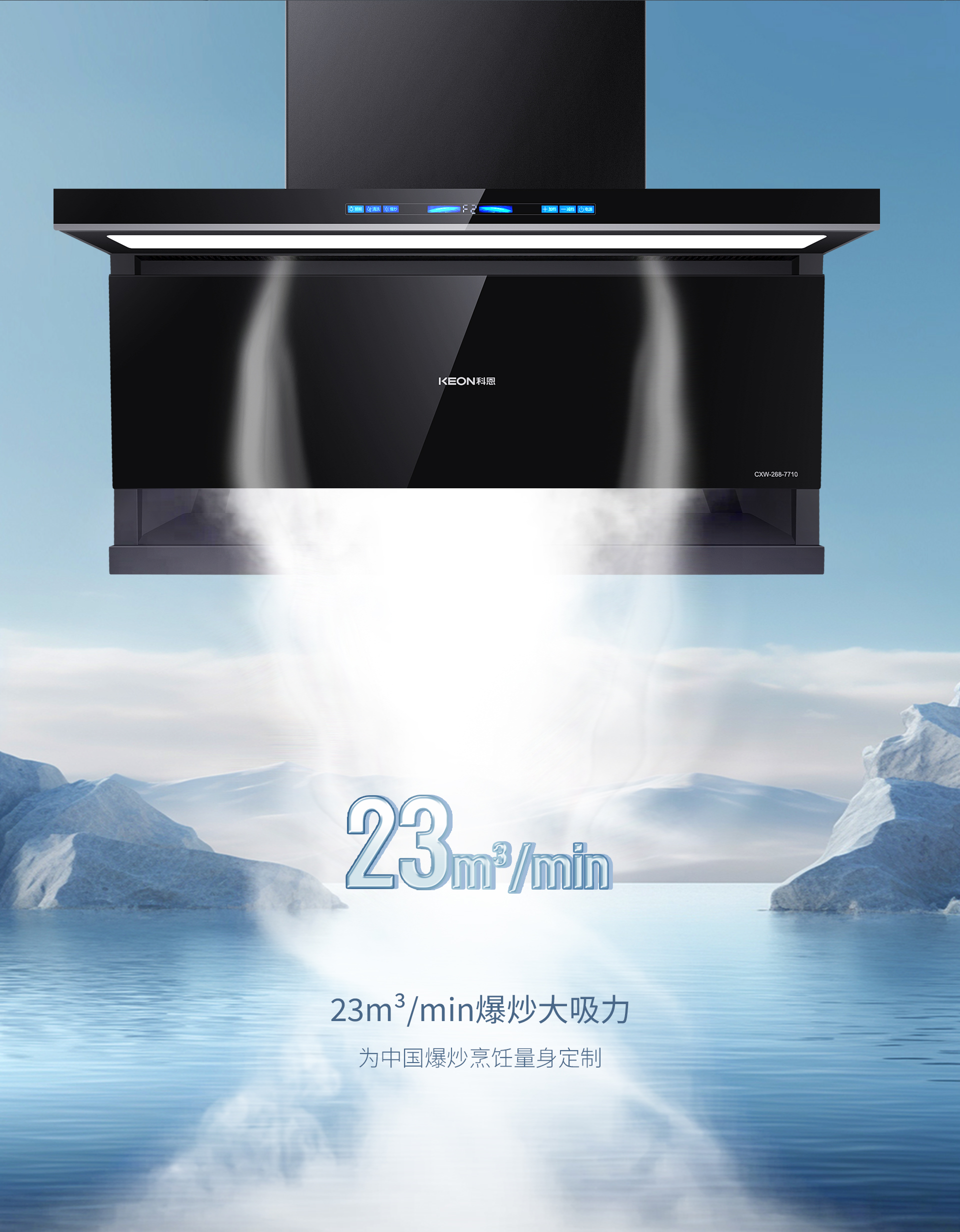 面對中式烹飪中常見的重油爆炒,它也能從容應(yīng)對,23m³/min的強(qiáng)勁吸力如颶風(fēng)過境,瞬間將油煙吸凈,還廚房一片清新。