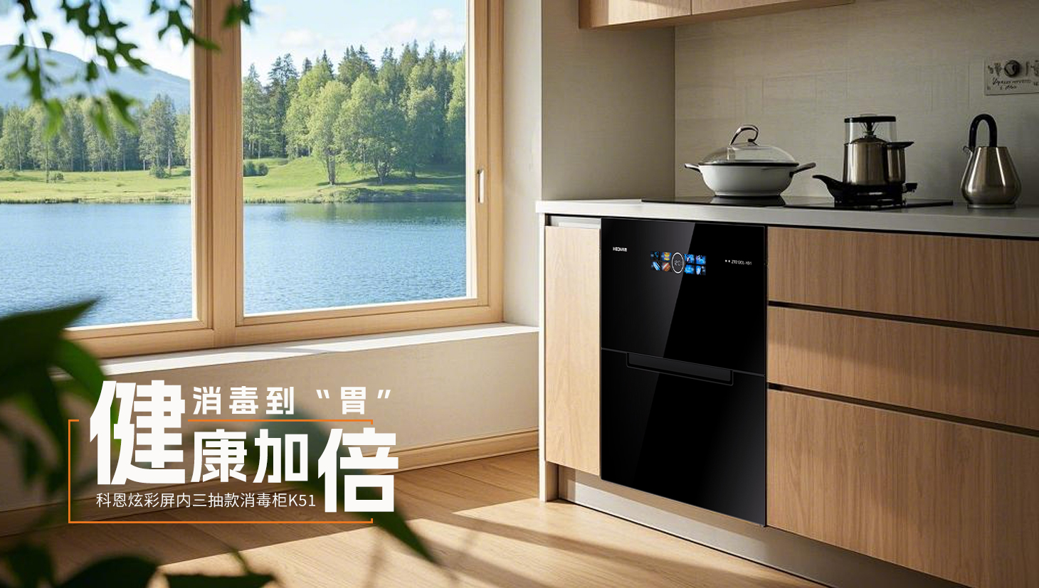 回南天+雨季的雙重暴擊,濕度拉滿警報(bào),剛洗的玻璃杯凝滿水珠,木筷三天冒霉斑,連不銹鋼勺都裹上了一層黏膩。當(dāng)廚房淪為”返潮重災(zāi)區(qū)“,普通消毒柜?治標(biāo)不治本,刀叉縫里的黑斑,奶瓶口的殘留,在你看不見的角落瘋狂繁殖。科恩藍(lán)盾衛(wèi)士系列消毒柜重磅來襲,K50簡約款,K51尊享款,K52時(shí)尚款三款消毒柜供你選擇,消烘存三體聯(lián)動,讓細(xì)菌無處遁形。