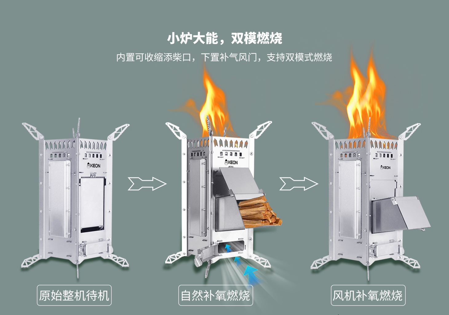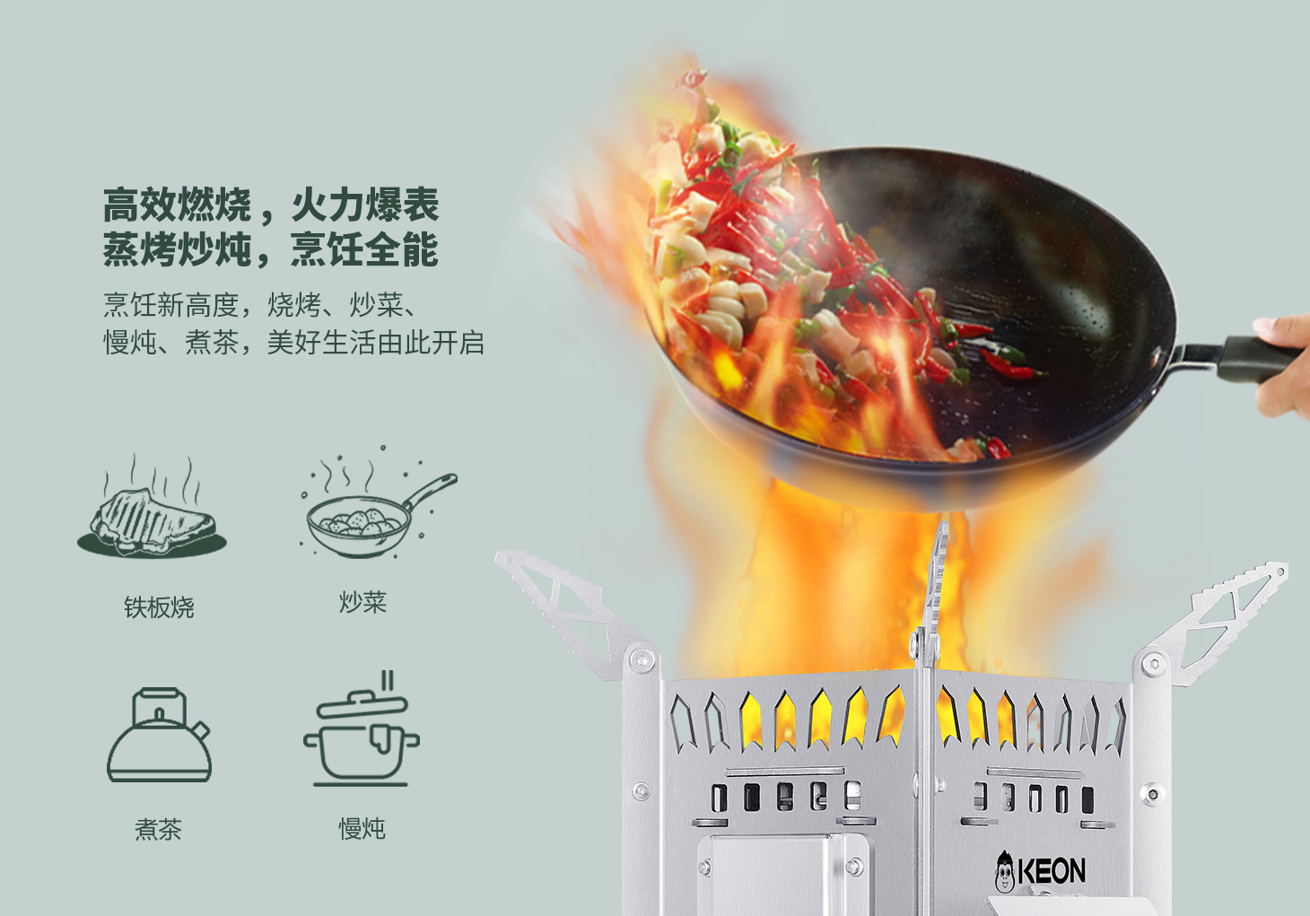 傳統(tǒng)爐灶的嗆鼻濃煙模糊了山色,科恩提供全新解決方案,火箭爐S12設置3D繞流供氧系統(tǒng)。科學供養(yǎng),猛火無煙,可調(diào)支撐腳,穩(wěn)立碎石坡地。熱效率超傳統(tǒng)爐具250%,省柴省心更省空間,從野餐到探險全覆蓋。