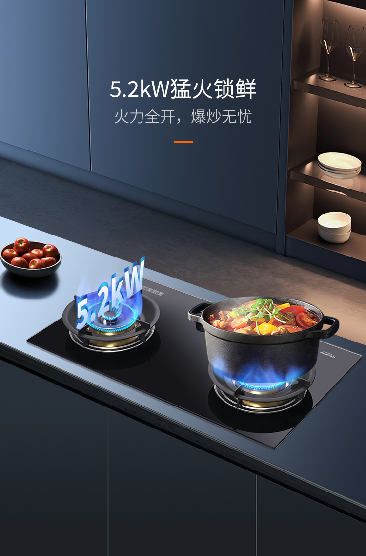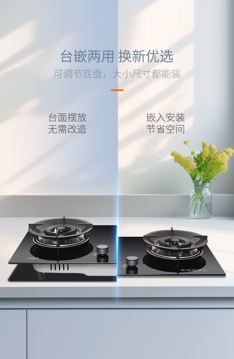 小灶大能,換裝無憂。自適應(yīng)底盤,換灶零門檻。不擴(kuò)孔不改孔,老廚房無縫升級。臺嵌兩用,換新優(yōu)選,意外熄火秒斷氣源,一級能效認(rèn)證,環(huán)保省錢雙贏,舊灶退役,新灶即刻上崗。黑晶美學(xué),格調(diào)新生。黑晶防爆鋼化玻璃面板,一抹即凈的優(yōu)雅,廚房秒變秀場。蜂巢矩陣不銹鋼湯盤,頑固污漬克星,全新筑巢方式點線嵌入,污漬無處遁形,清潔更輕松。