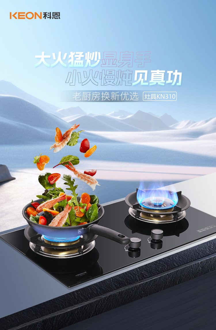 七月流火,廚房革命時。科恩全新推出灶具KN300,KN310,免改孔換裝讓老廚房一鍵換新。以硬核科技重構(gòu)烹飪能量核心,讓每一次開火都成為享受,告別老舊灶臺,迎接高效時代。