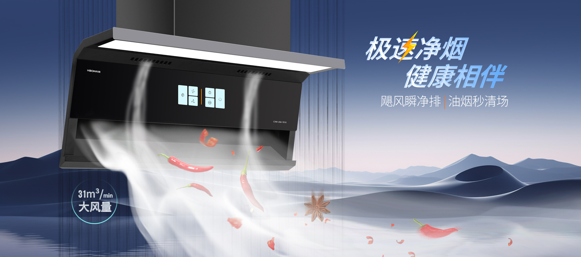 空間煥新,凈美廚房。舊煙機笨重占空間難適配,換新品怕拆櫥柜,2.5cm輕薄機身解你顧慮,冰川灰鑲邊適配多風格,天鵝頸上仰設計釋放空間,烹飪操作從容坦蕩。爆炒濃煙,瞬吸凈場。辣椒入鍋油煙瞬間升騰,開放式廚房全家遭“煙熏”, 31m³/min大風量強勢捕獲,1350Pa變頻風壓破擁堵,高峰時段排煙依舊順暢,清新空氣常駐烹飪時光。全域攏煙,無隙可逃。吸力再大跑煙也枉然,895mm寬域控煙筑屏障,負壓內(nèi)傾設計順勢直排,頂吸側(cè)吸協(xié)同發(fā)力,下層攏煙上層阻逃逸,輕重油煙全被精準鎖定。