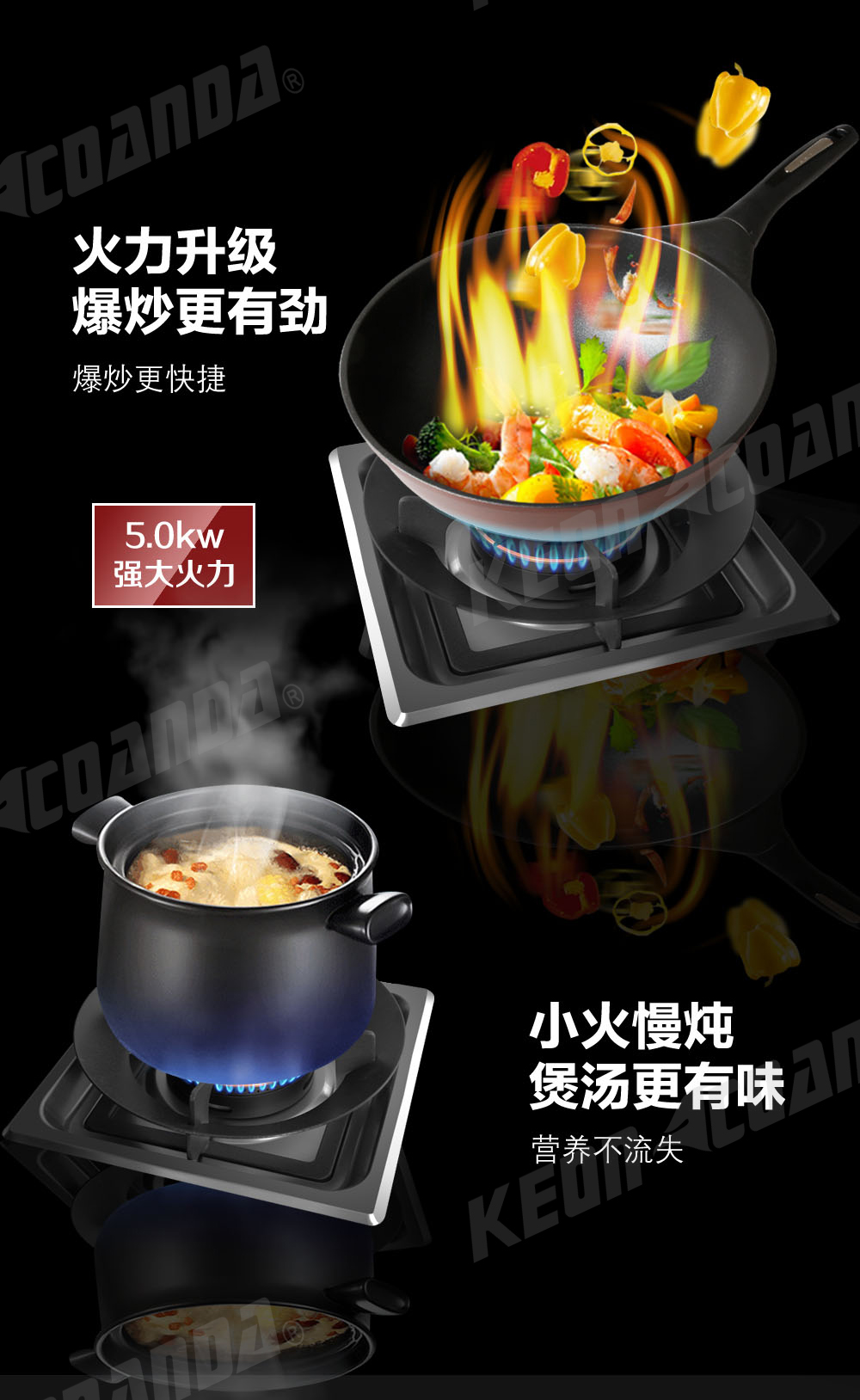 5.0KW火候,大火夠猛,小火更穩(wěn),爆炒更舒心