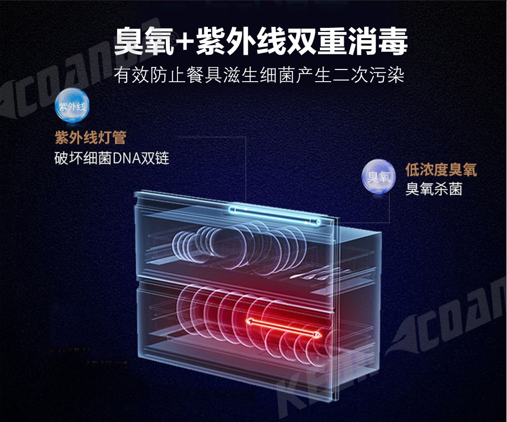 臭氧+紫外線雙重消毒設(shè)計(jì),有效防止餐具滋生細(xì)菌產(chǎn)生二次污染等風(fēng)險(xiǎn)