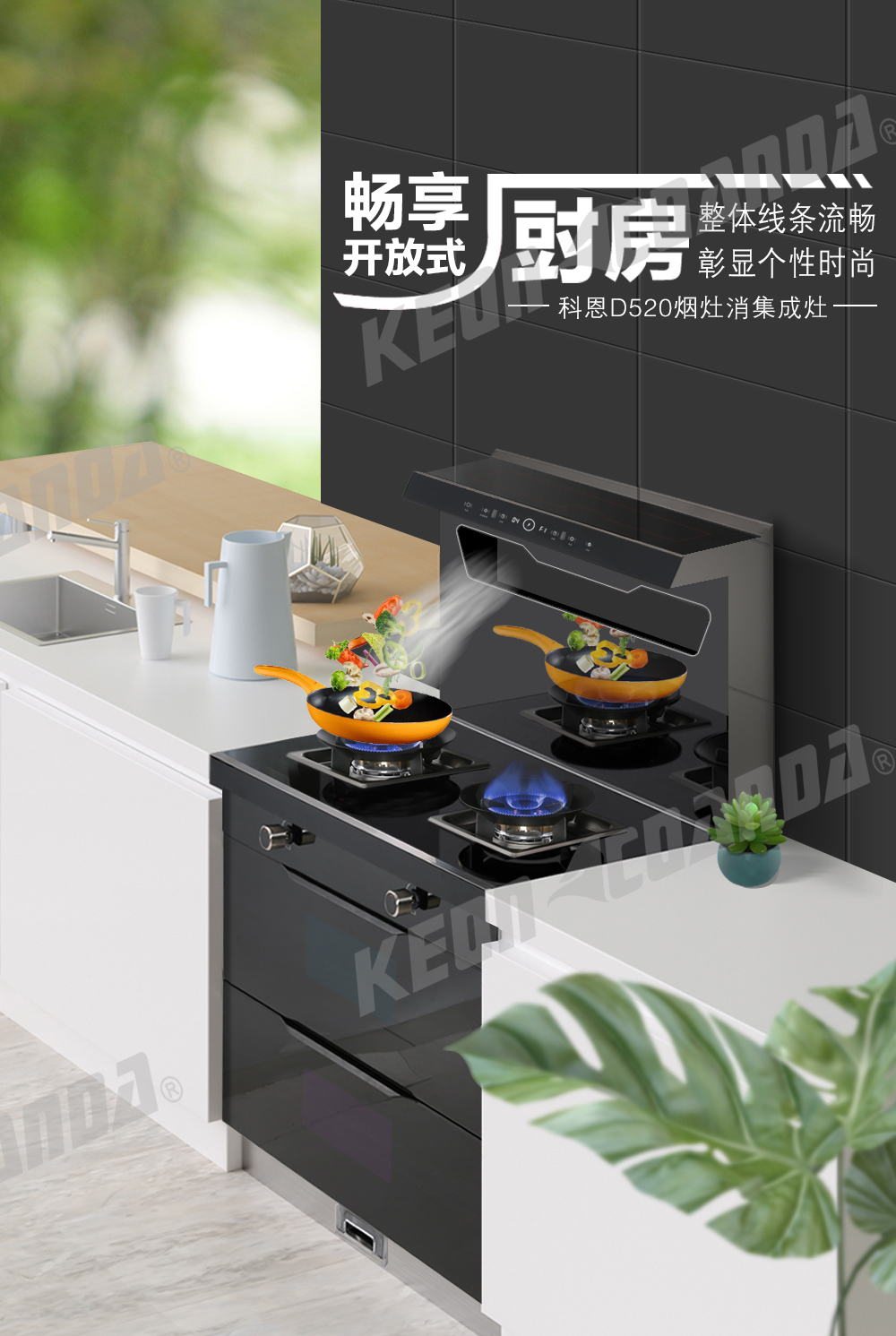 頂部60℃保溫置物功能,無(wú)油煙置物區(qū),調(diào)料罐免受油煙侵?jǐn)_
