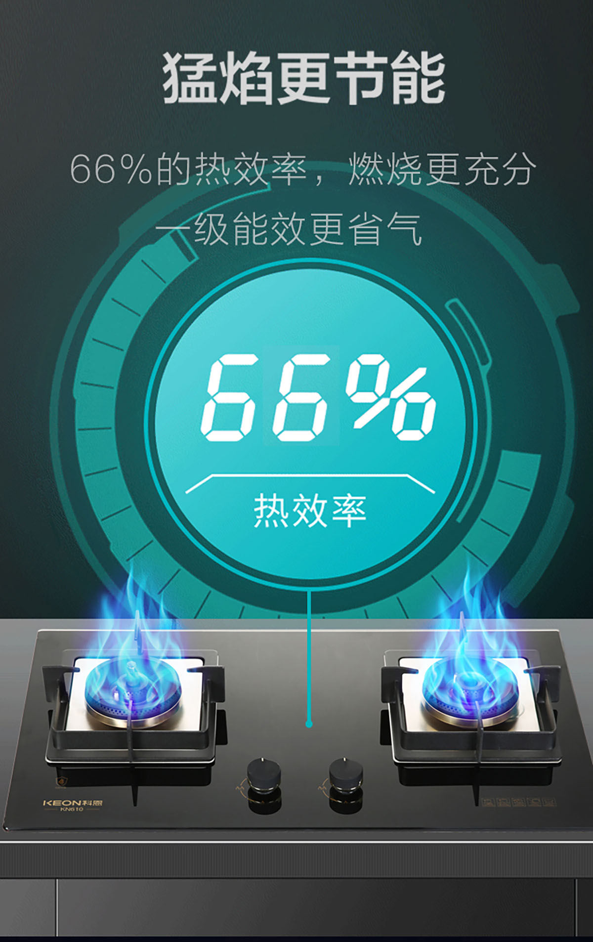 • 猛焰更節(jié)能,66%的熱效率,燃燒更充分,一級(jí)能效更省氣