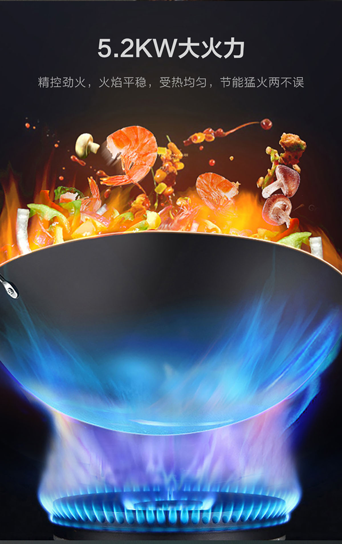 • 5.2KW大火力,精控勁火,受熱均勻,節(jié)能猛火兩不誤