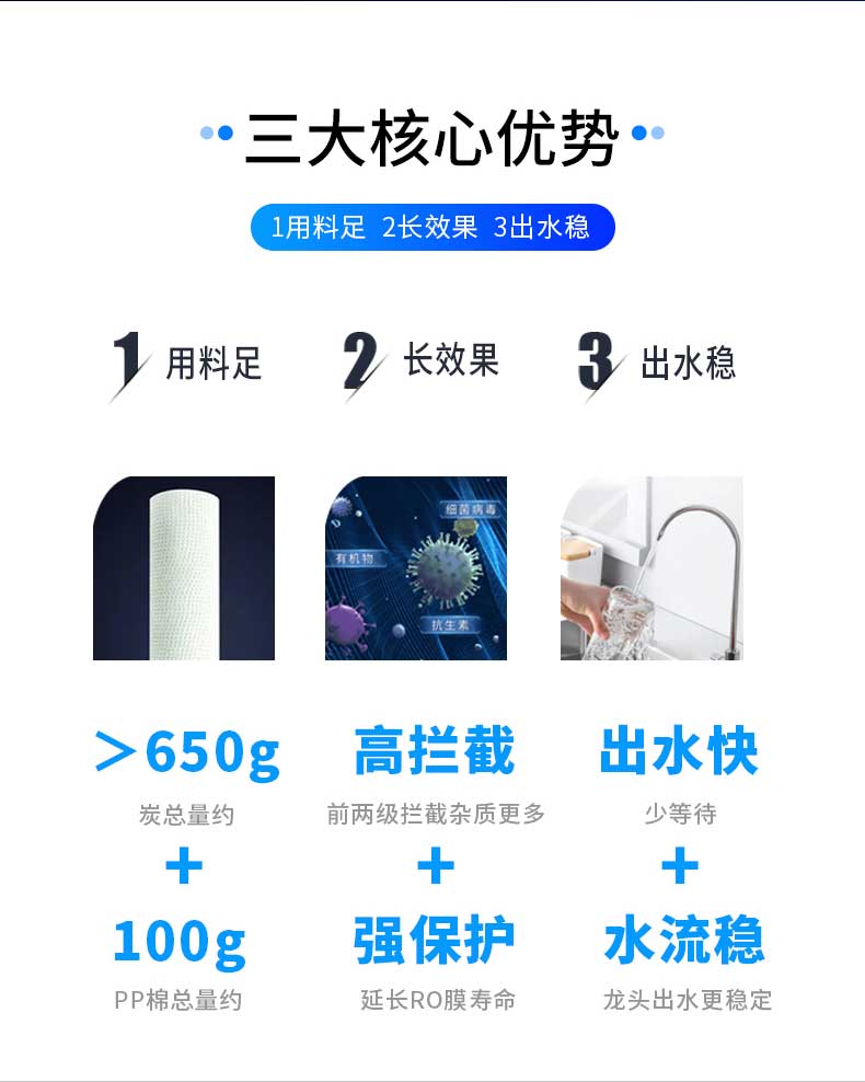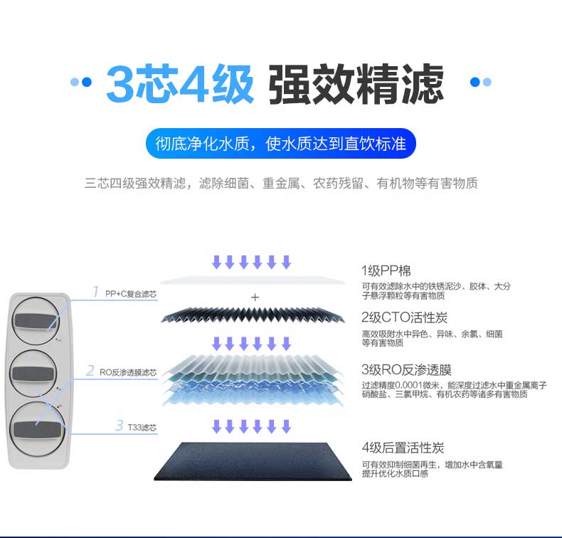 三芯四級強(qiáng)效精濾,濾除99%細(xì)菌重金屬