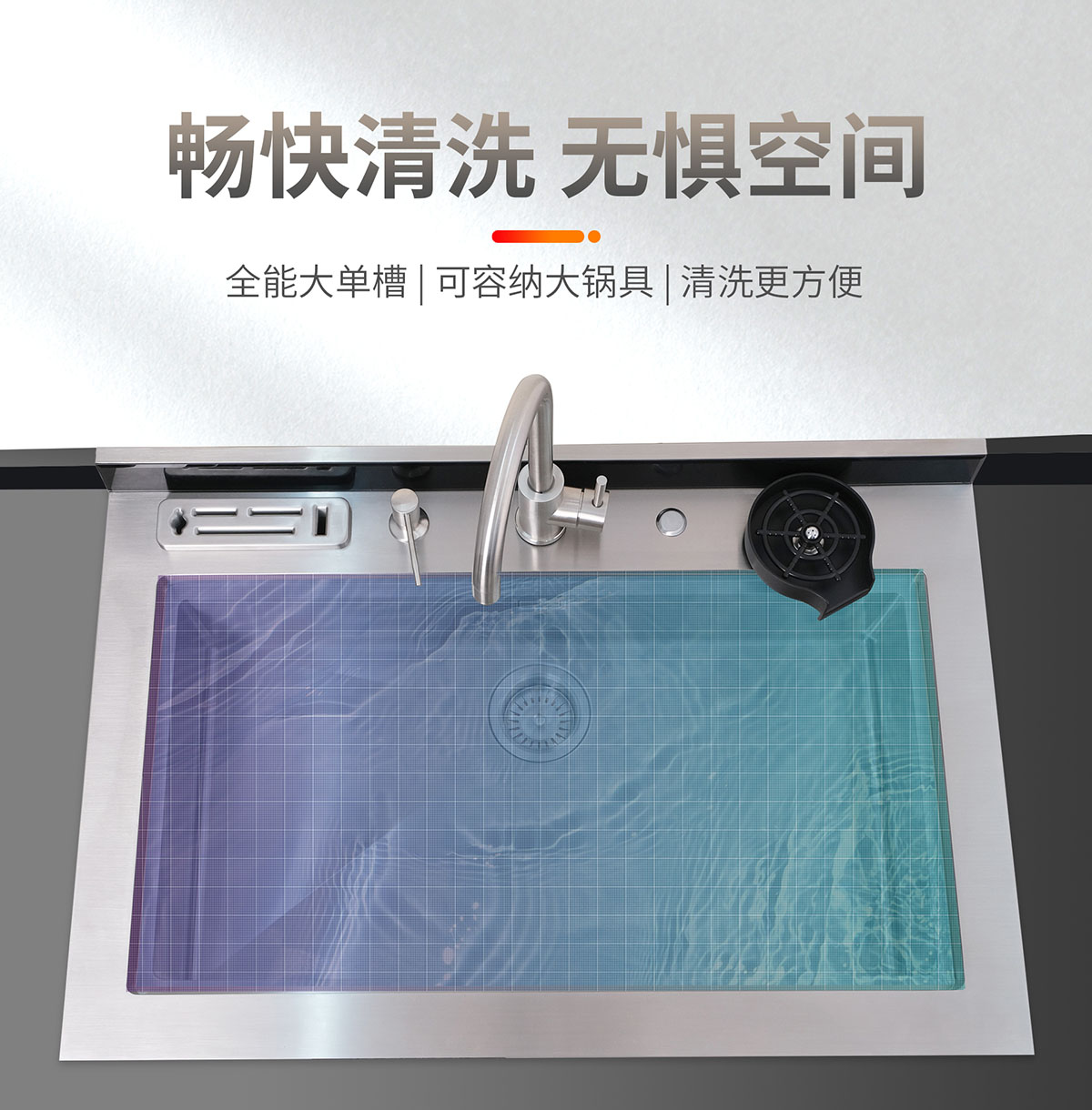 - 瀝水籃與砧板可靈動移動,功能分區(qū),隨心移動
