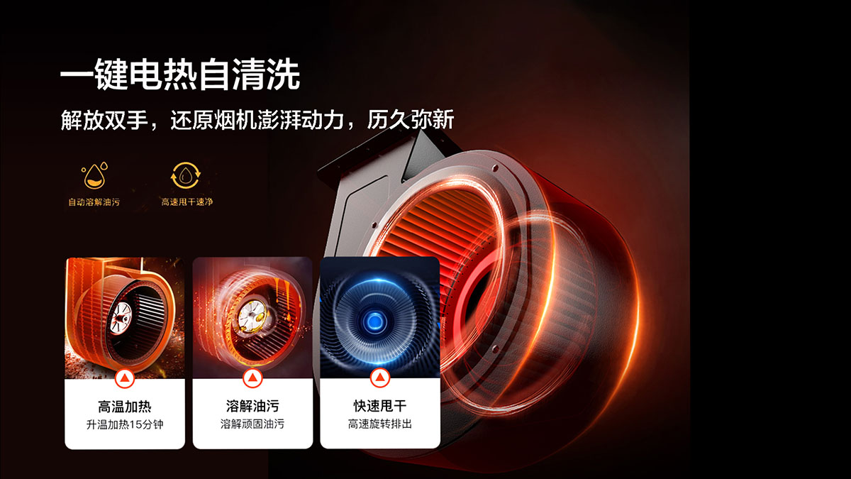一鍵電熱自清洗,解放雙手,還原煙機(jī)澎湃動(dòng)力,歷久彌新