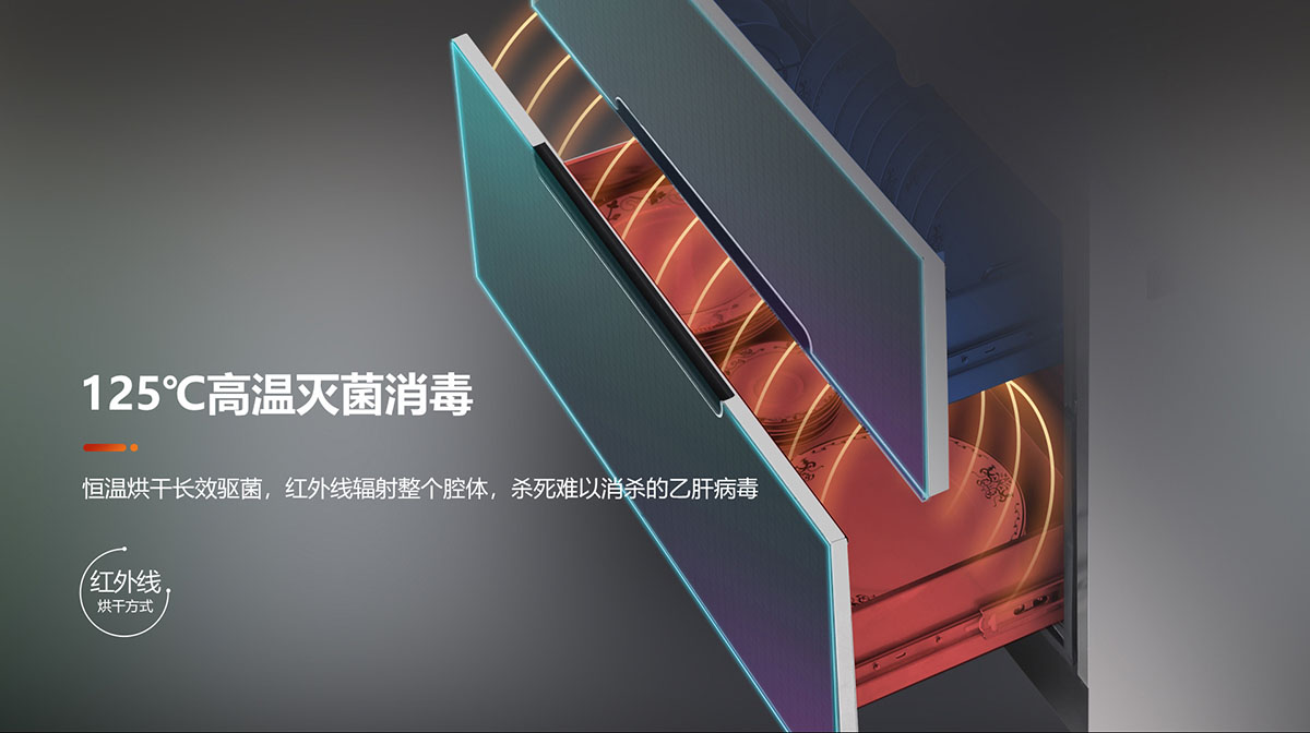 120L大容量消毒柜,采用臭氧與紫外線雙重消毒