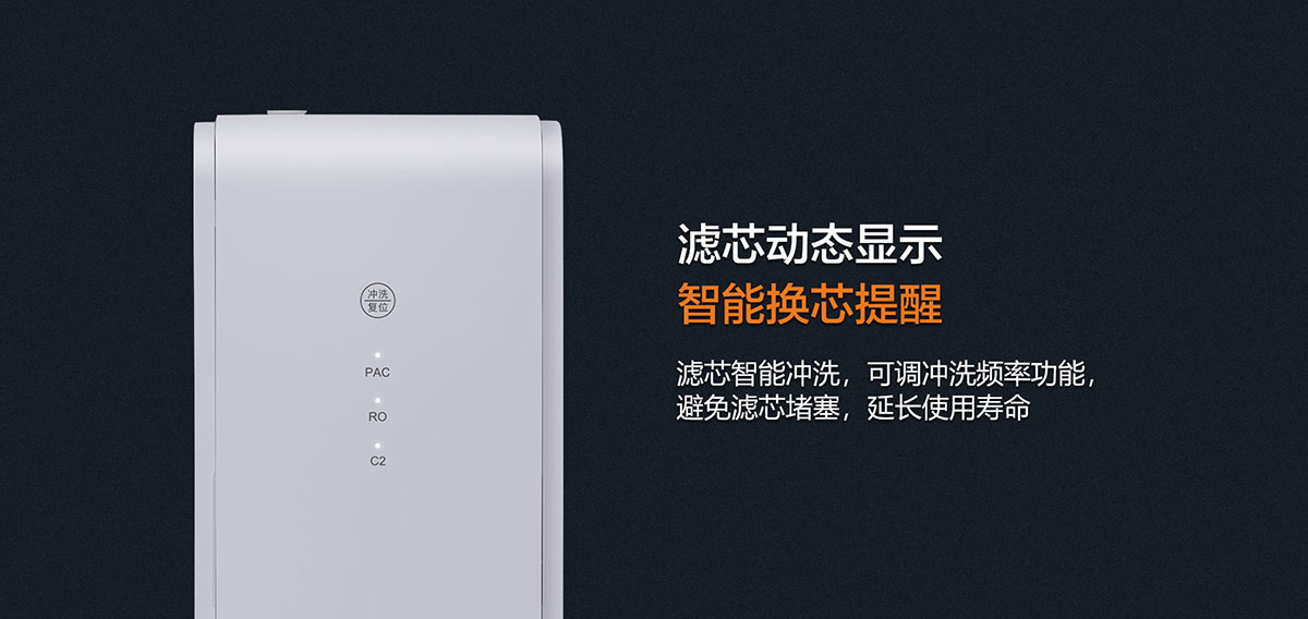 - 濾芯智能沖洗,人性化智能換芯提醒