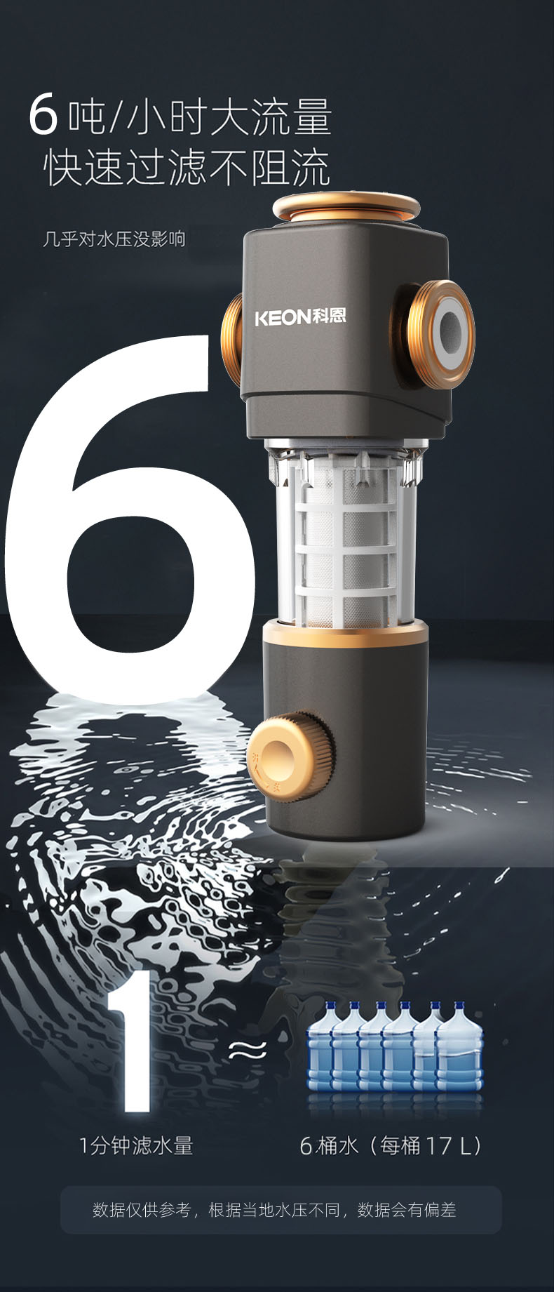 6噸/小時大流量,快速過濾,全屋用水無壓力