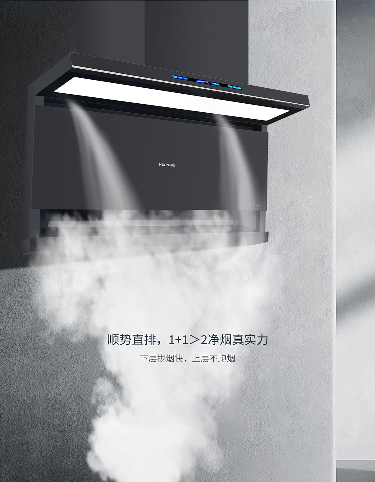 下吸上攏,頂側(cè)雙吸結(jié)構(gòu),油煙不逃逸