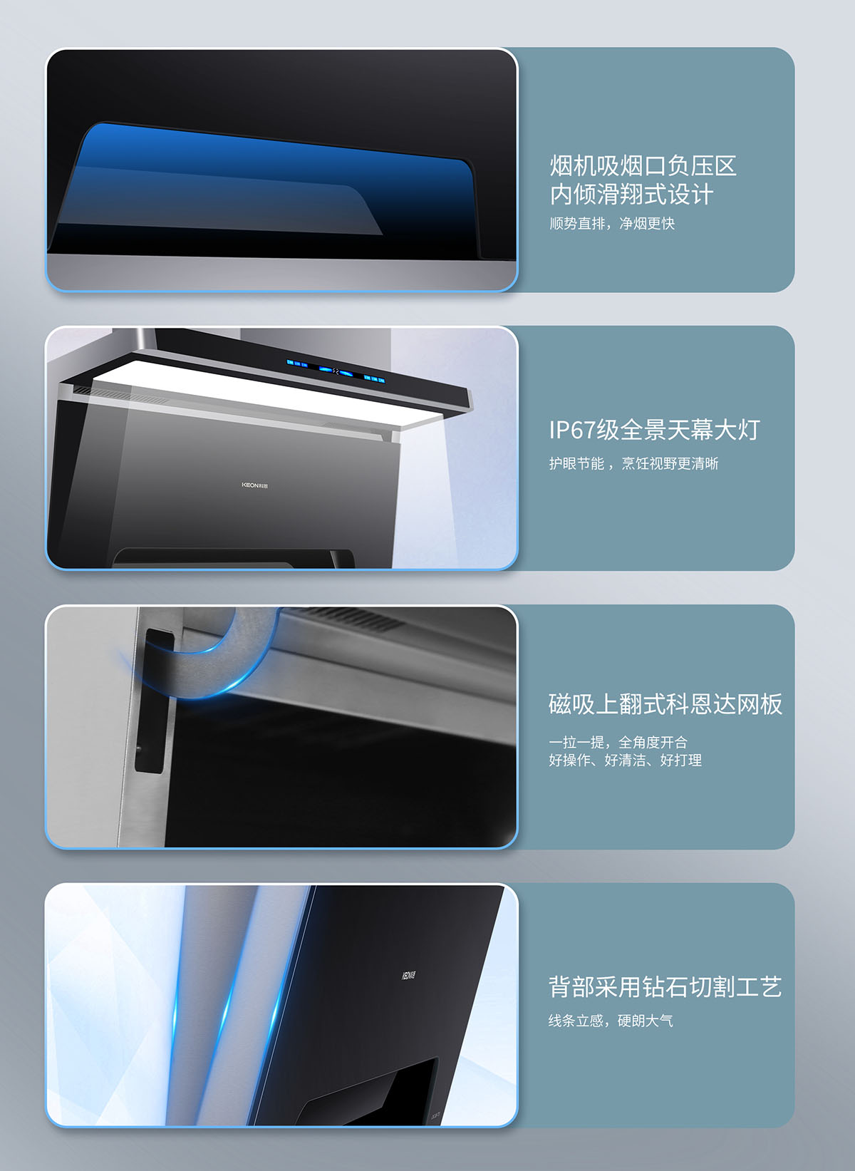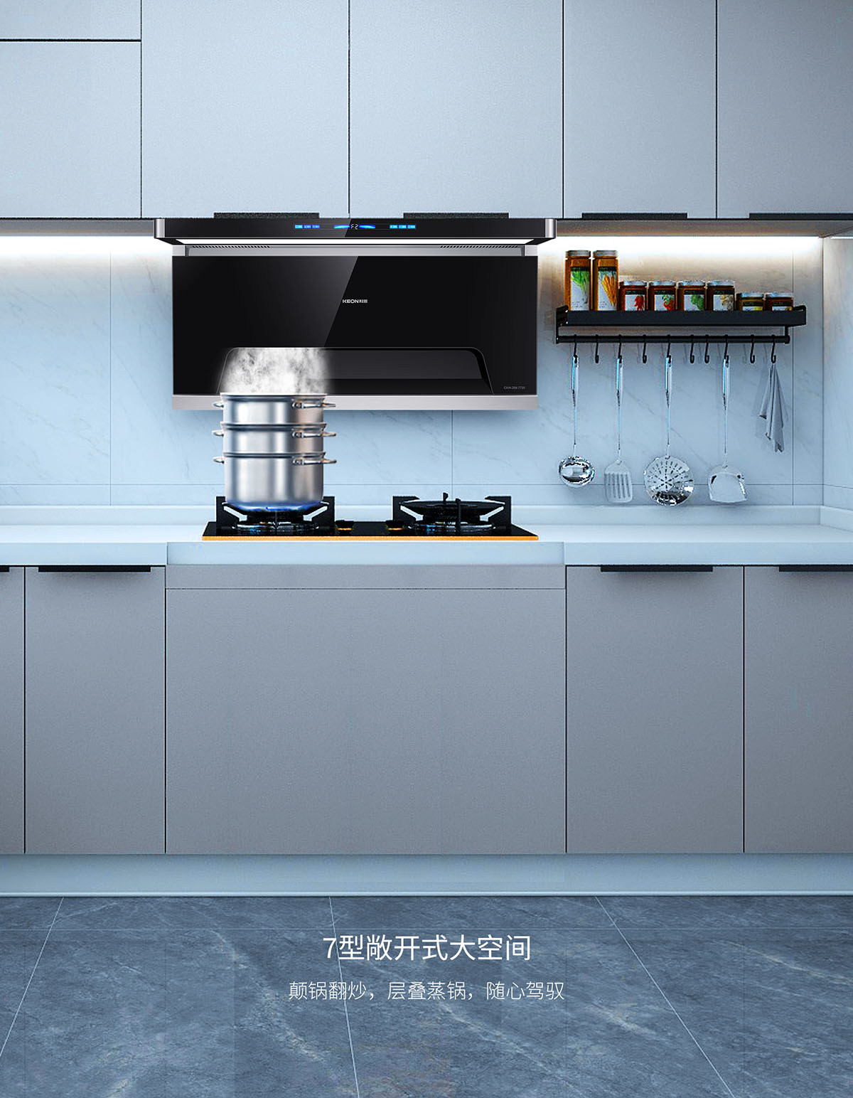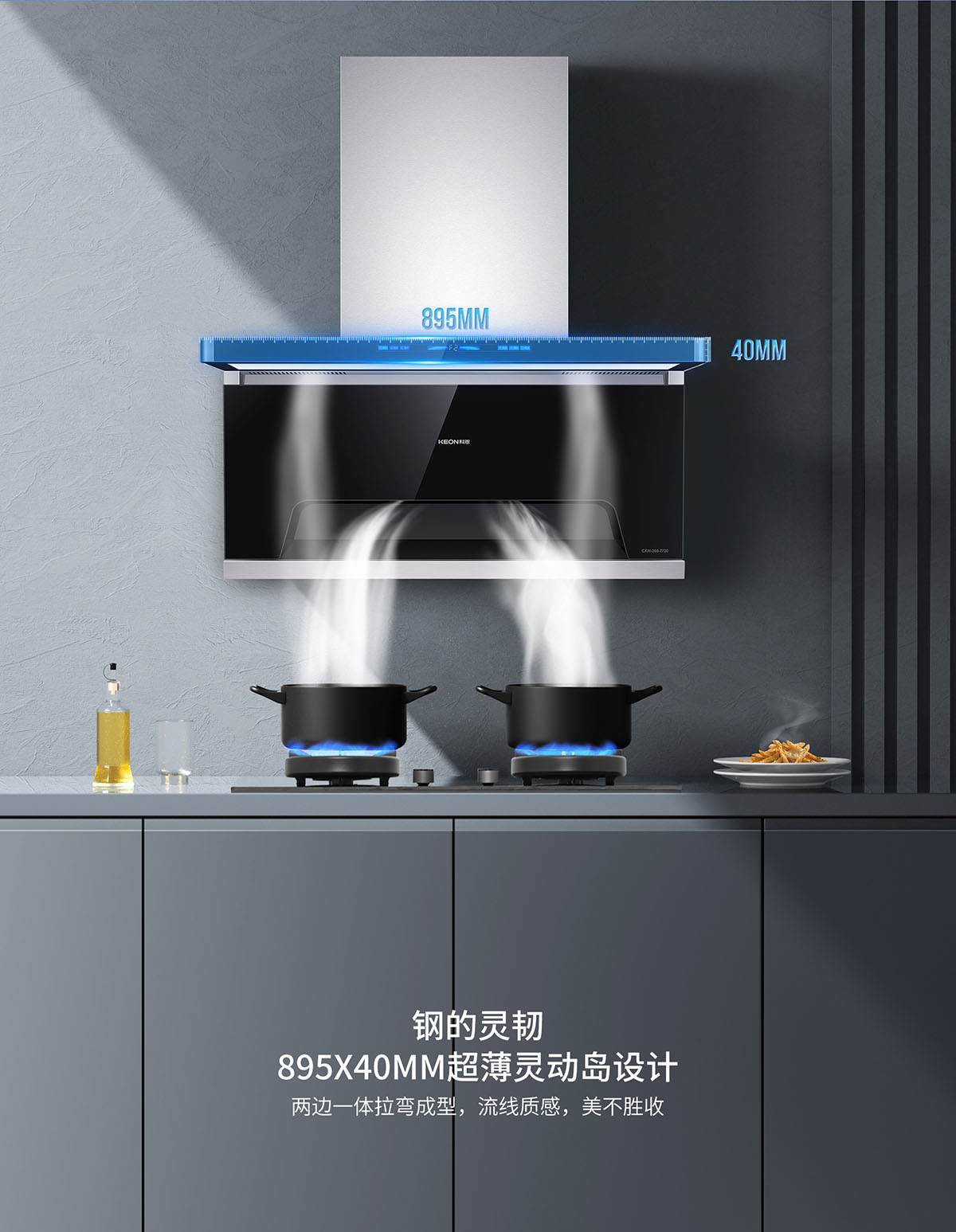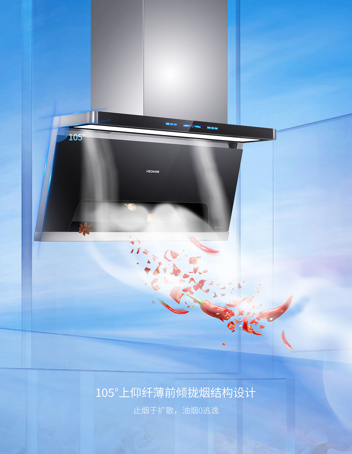105°仰角攏煙設(shè)計(jì),瘦身大空間,翻炒不碰頭