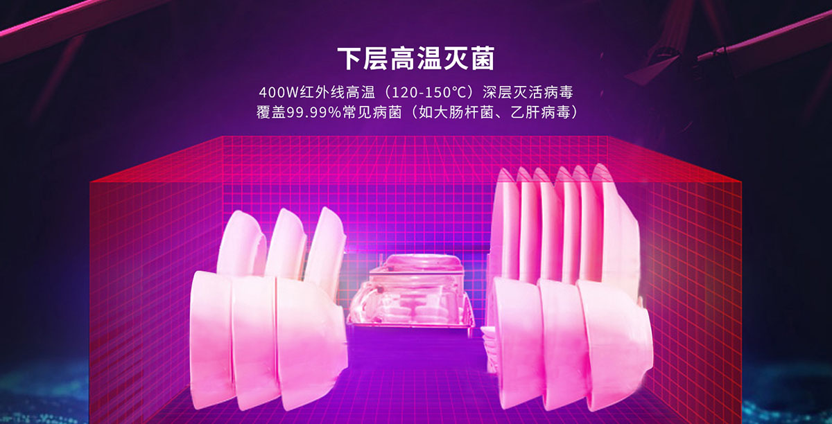 • 下層遠(yuǎn)紅外高溫滅菌,消滅99.99%常見病菌