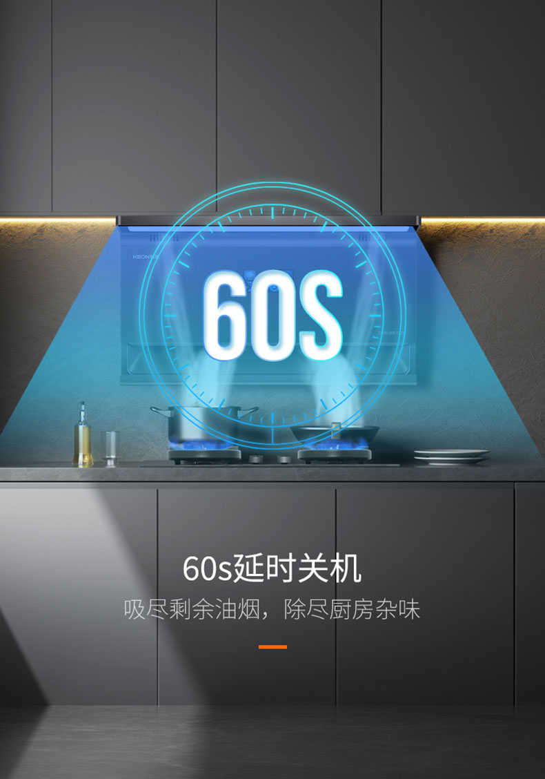 60s延時(shí)關(guān)機(jī)吸盡剩余油煙,除盡廚房雜味