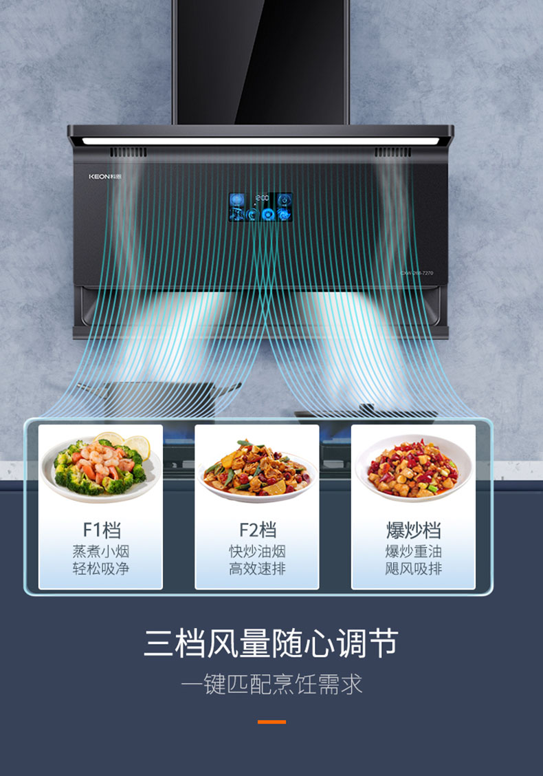 三檔風(fēng)量隨心調(diào)節(jié),一鍵匹配烹飪需求 。