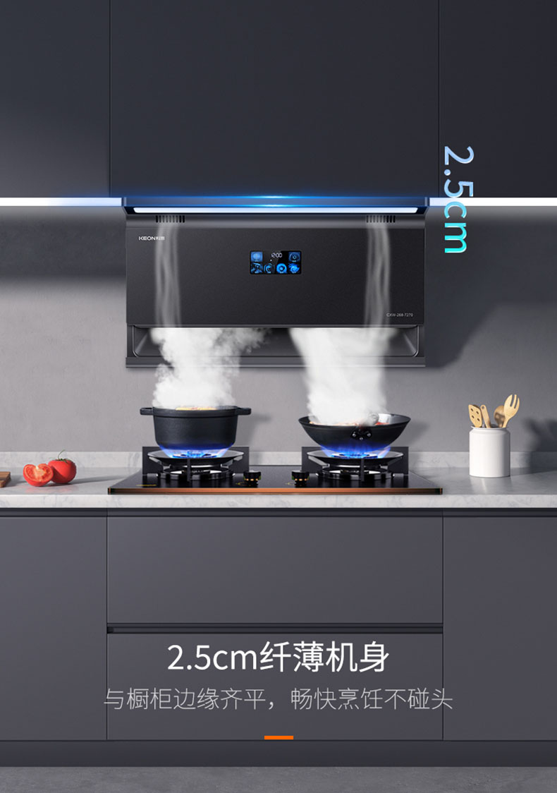 2.5cm纖薄機(jī)身,與櫥柜邊緣齊平,暢快烹飪不碰頭