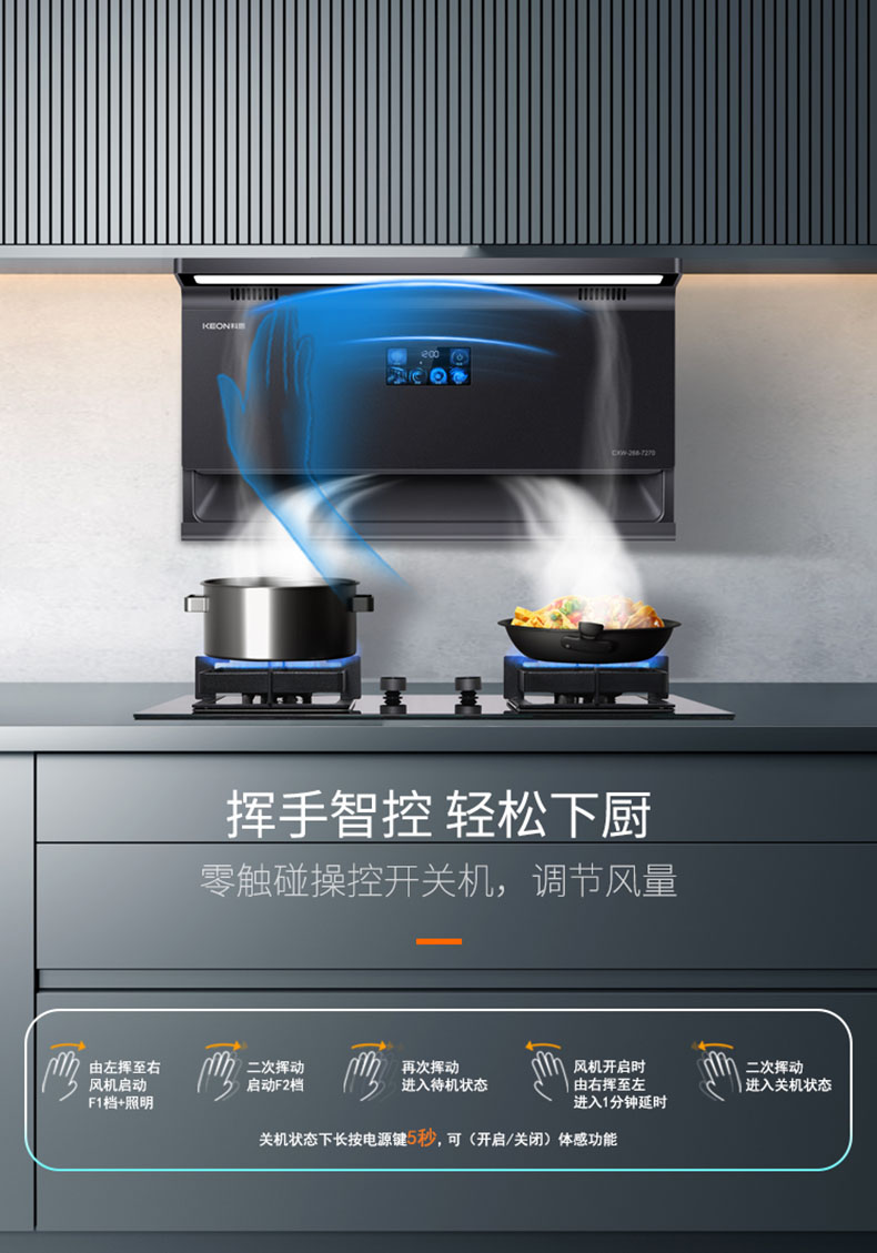 揮手智控,零觸碰操控開(kāi)關(guān)機(jī),調(diào)節(jié)風(fēng)量