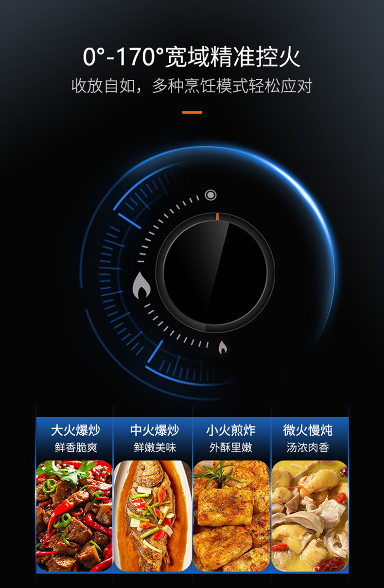 - 0°-170°寬域精準(zhǔn)控火,收放自如