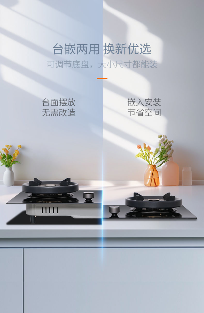 - 臺(tái)嵌兩用式,臺(tái)面直接放置,安裝不受限;嵌入安裝,完美貼合臺(tái)面