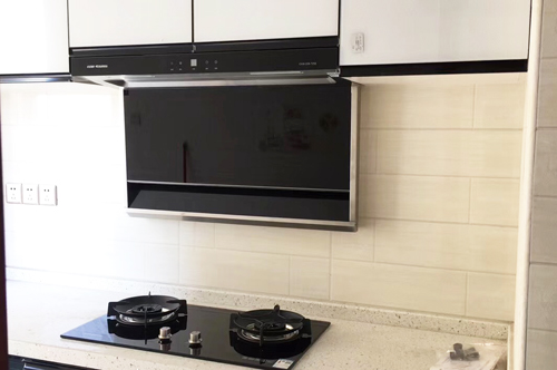 科恩廣西經(jīng)銷商提供的9011煙機和蒸箱廚房實景